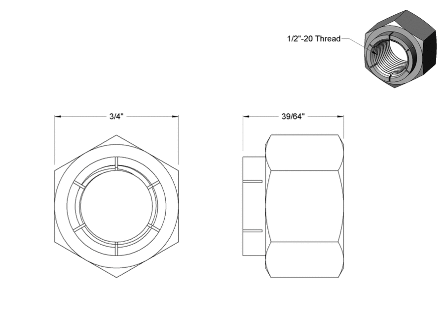 Flex-Top Locknut, ½ inch -20 Thread Size (Pack of 10)